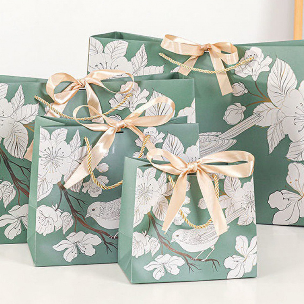1Pc Bolsa Portátil De Grande Capacidade Para Armazenamento Flores Bird Print Presentes Sacos De Embalagem