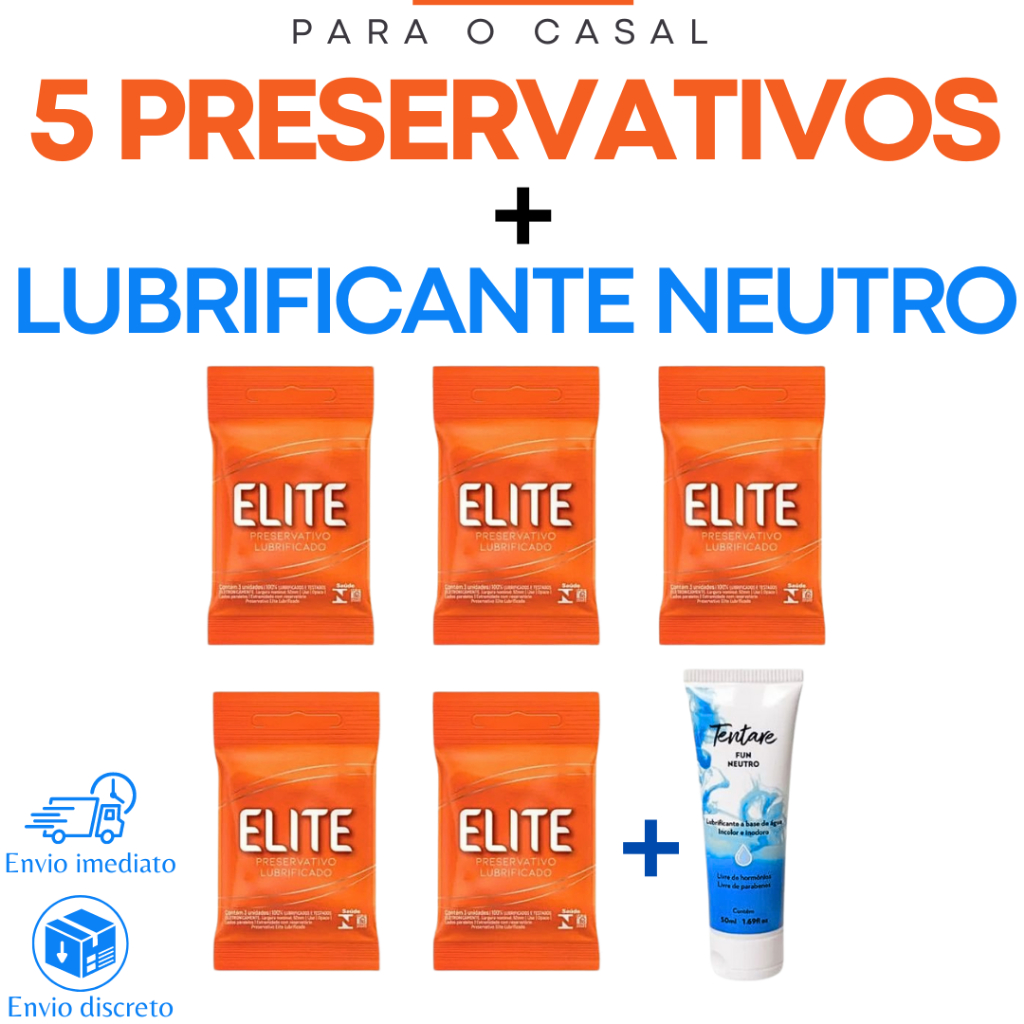 Lubrificante Intimo a Base de Agua Neutro Tentare Fun e Kit 5 Preservativos Masculino Ultra Fina Pele com Pele