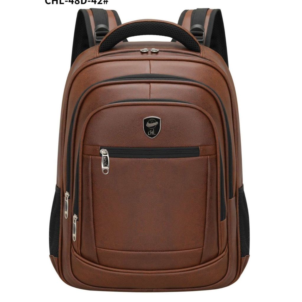 Mochila de Couro PU Grande Impermeável Reforçada Resistência Notebook com Bolso Anti-furto 48d-41