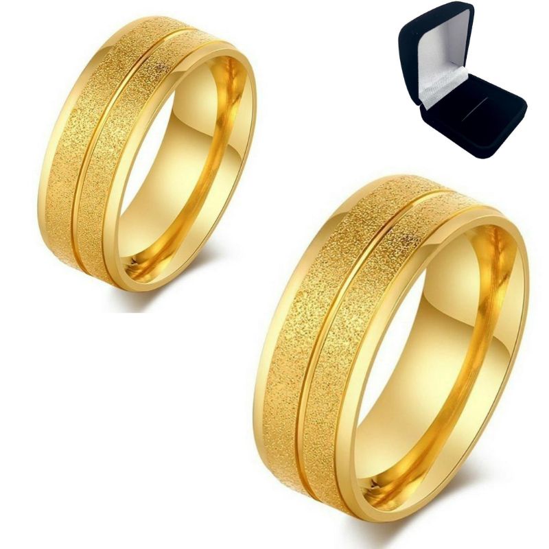 Par de Alianças Casamento Noivado Jateada 4 mm Friso Banhada Ouro 18K 5 Camadas