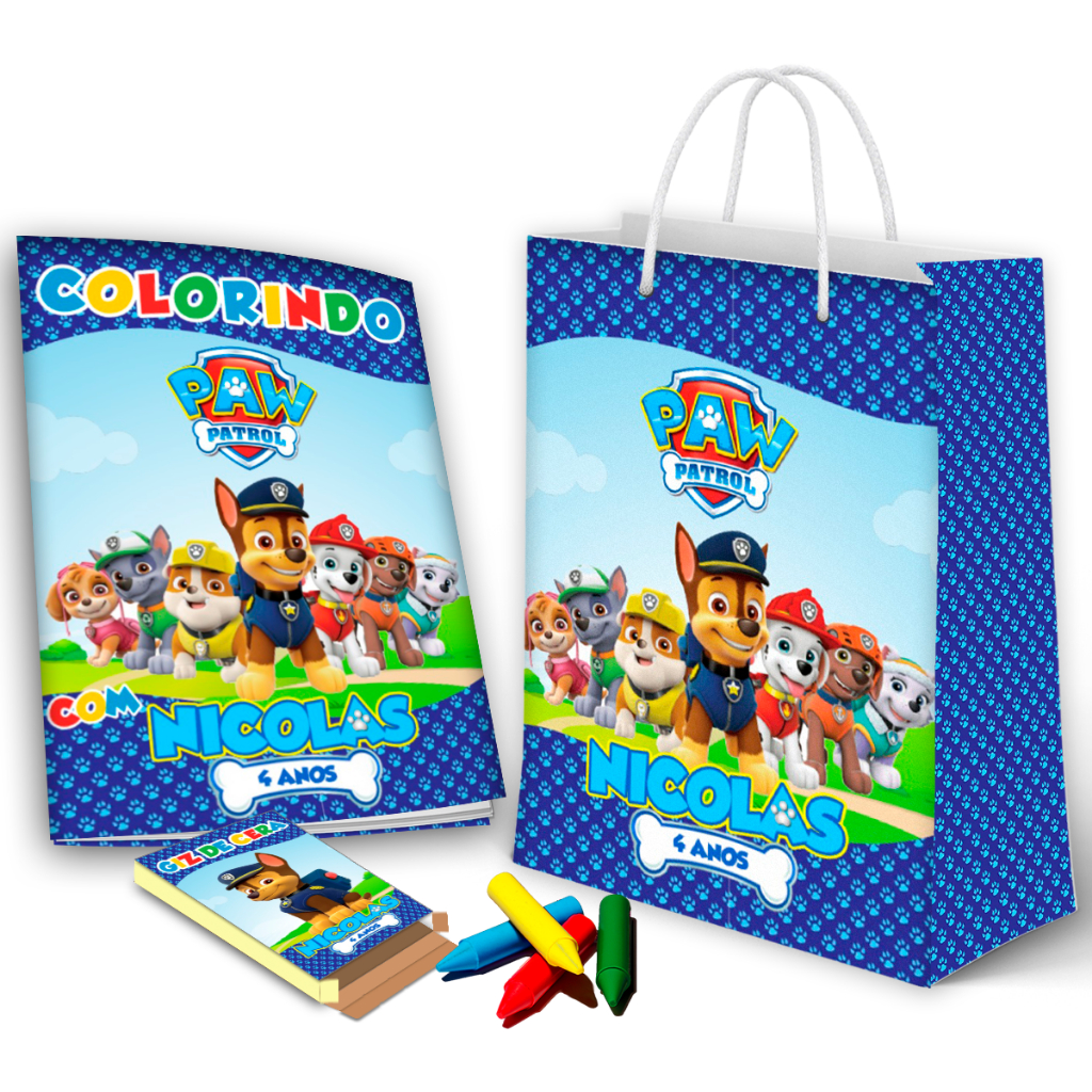 10, 20, 30 ou 40 sacolinha + revistinha de colorir + giz de cera patrulha canina kit festa de aniversário (envio rápido)