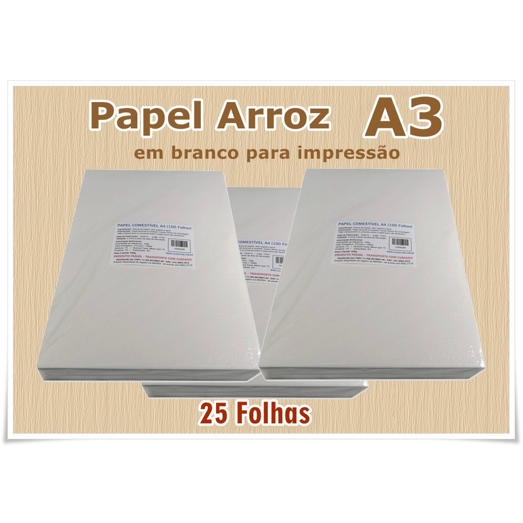 Papel Arroz Branco A3 - Pacote com 25 Folhas