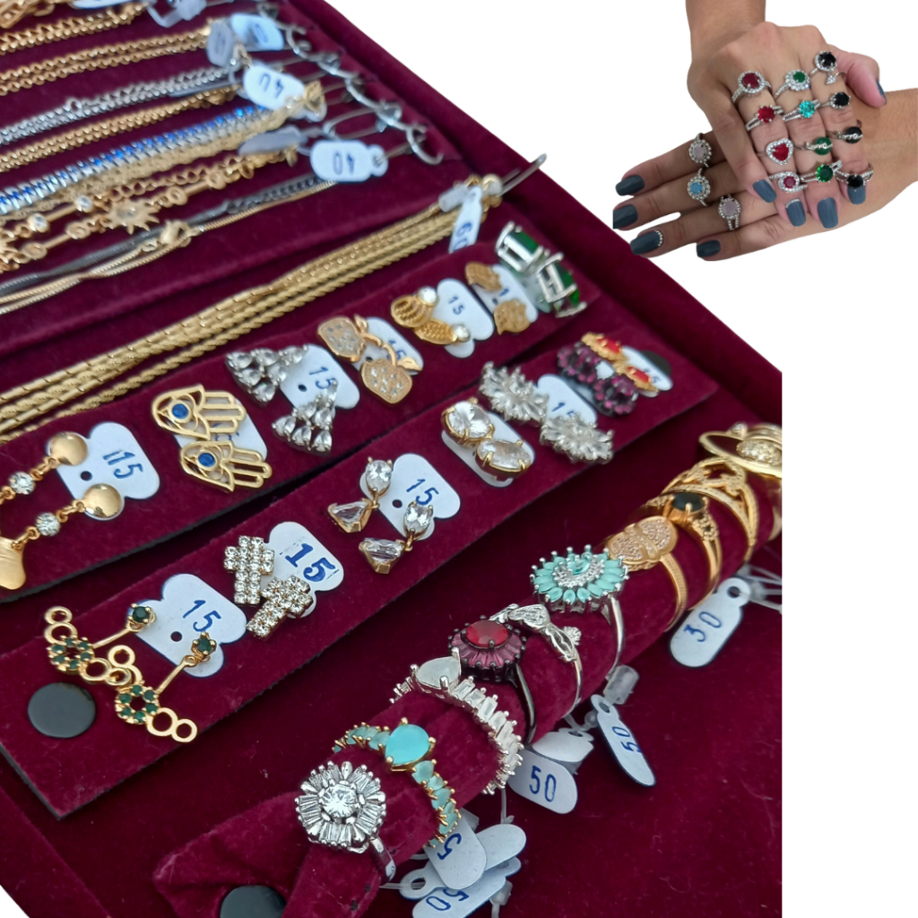 Reposição de semi Joias Kit com 17 peças + Expositor