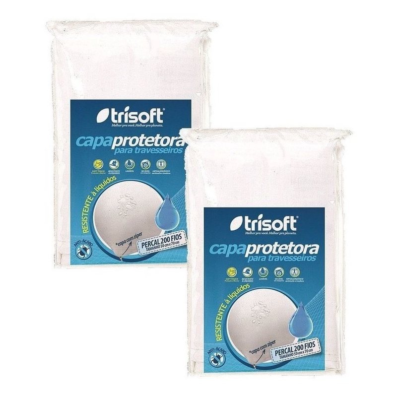 Kit 2 Capas Travesseiro Impermeável 100 % Algodão 200 Fios Zíper Trisoft 50x70 Cm