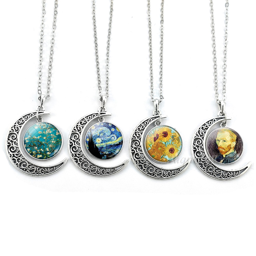 Colar De Lua Crescente De Van Gogh/Estrelada/Girassol/Pintura A Óleo/Pingente/Cabochon