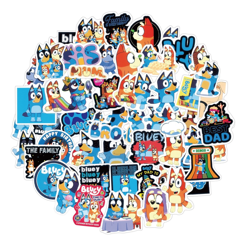 50pc/Lote Não Repetindo Adesivos Bluey À Prova D'água Decoração De Festa Infantil Favor