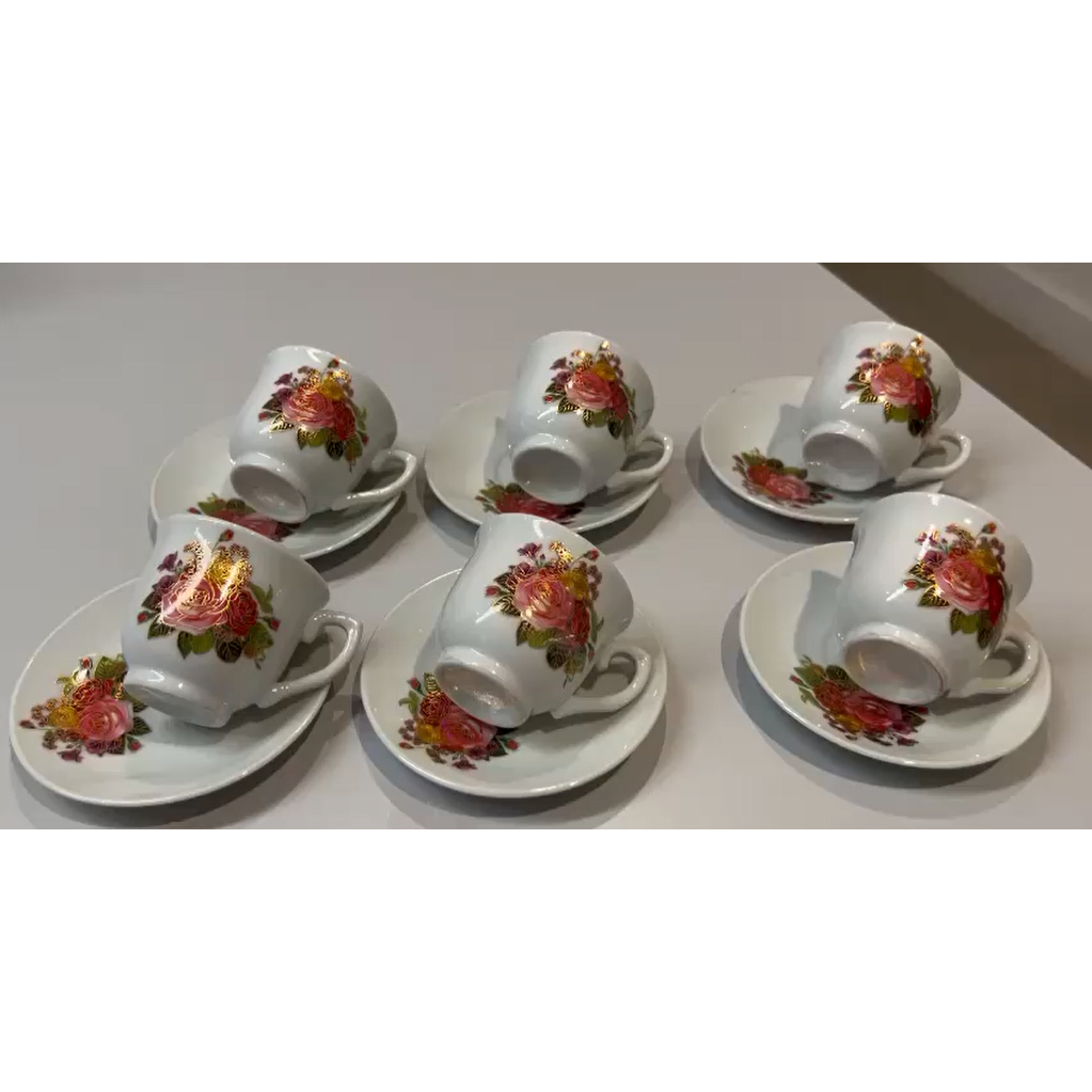 Conjunto de Xicaras de Café com Pires Floral Fina 12 Peças Porcelana 100ML