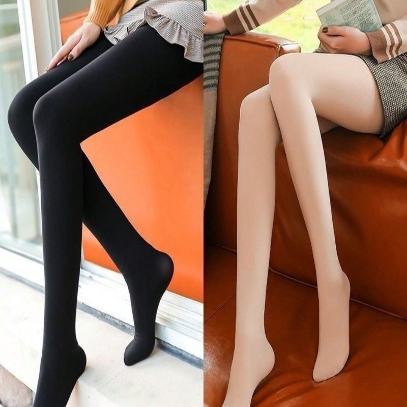 KIT 2 Meias Calças Flanelada Térmica Com e Sem pé Cintura Alta FIO 80 Preta Com Meia interna forrada