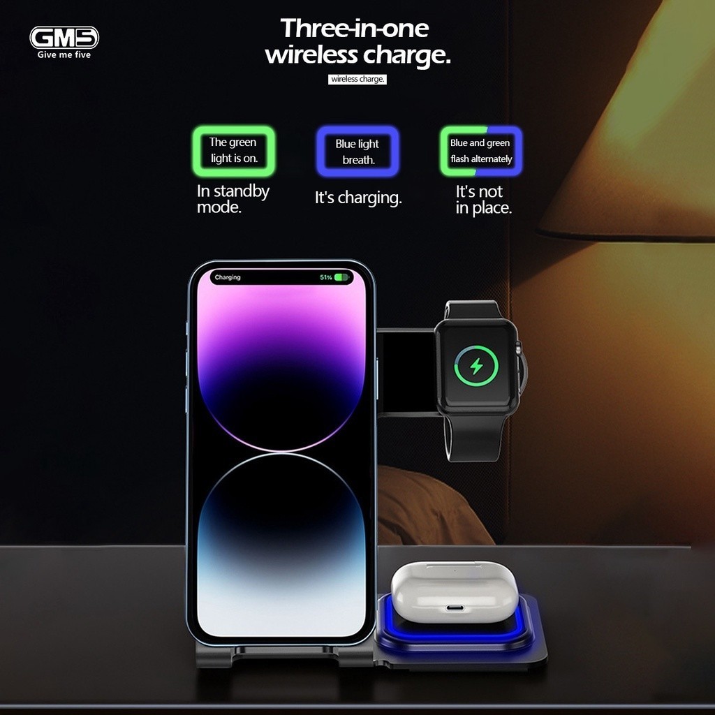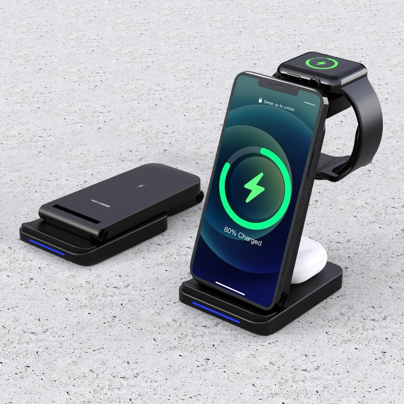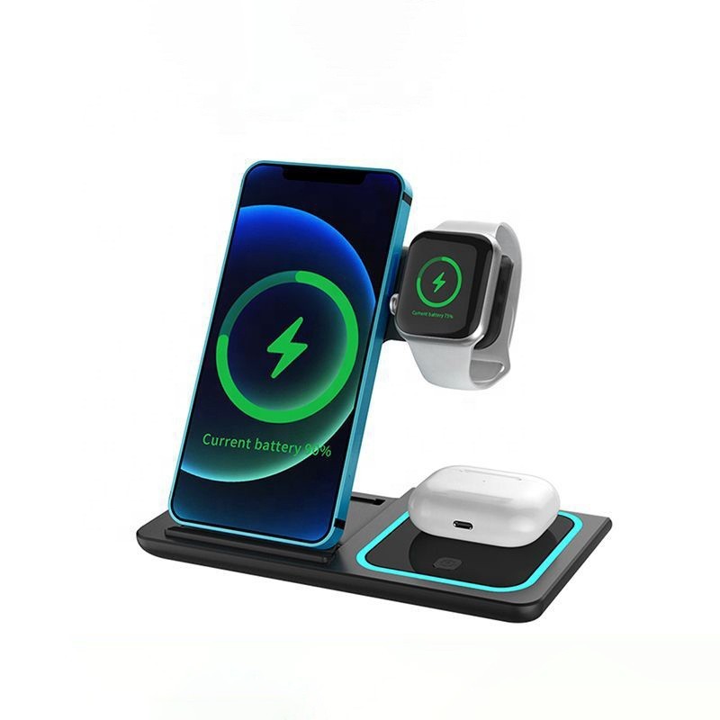 Suporte De Carga De Indução De Carregador Sem Fio Dobrável 3 Em 1 Para Estação Samsung Do iPhone