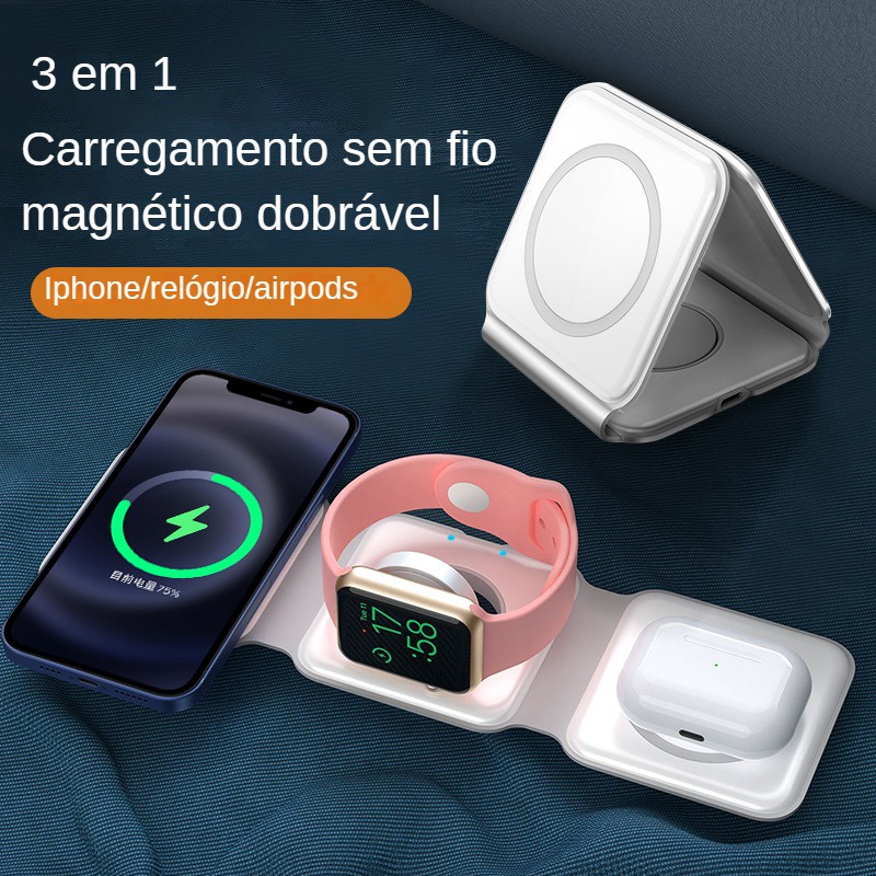 3 em 1 carregador magnético sem fio para Iphone 14promax/13/12/11/Apple Airpods Pro iWatch portátil dobrável doca de carregamento rápida