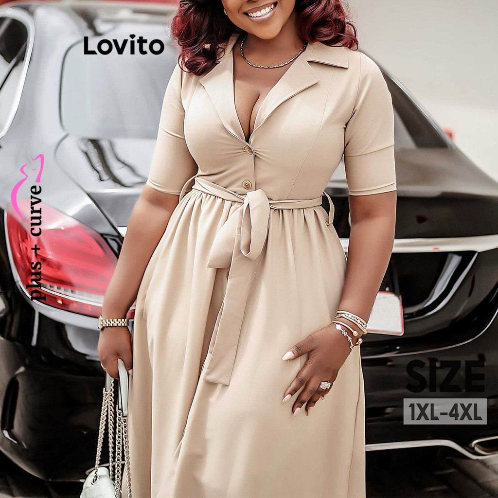 Lovito Vestido feminino plus size curvo elegante com cinto liso LNL67151