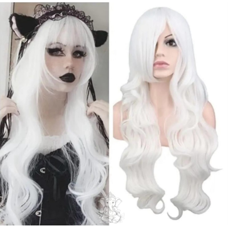 PERUCA WIG ORGÂNICA BRANCA ONDULADA - COM FRANJA