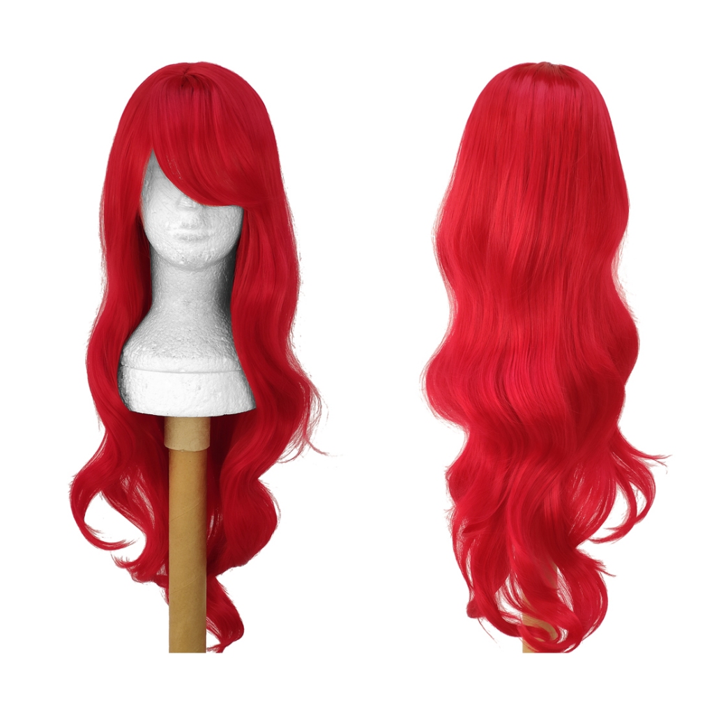 Peruca Vermelha Ondulada Longa Com Franja Cosplay Wig Ariel