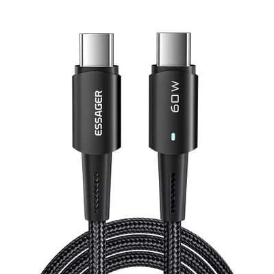 Cabo Usb-c 3 Metros Essager Turbo Pd 60w Revestimento Em Nylon Trançado E Carregamento Rápido