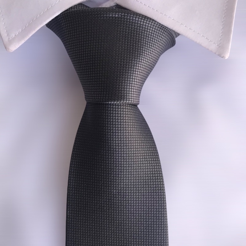 Gravata Slim Fit Xadrez Cinza Chumbo