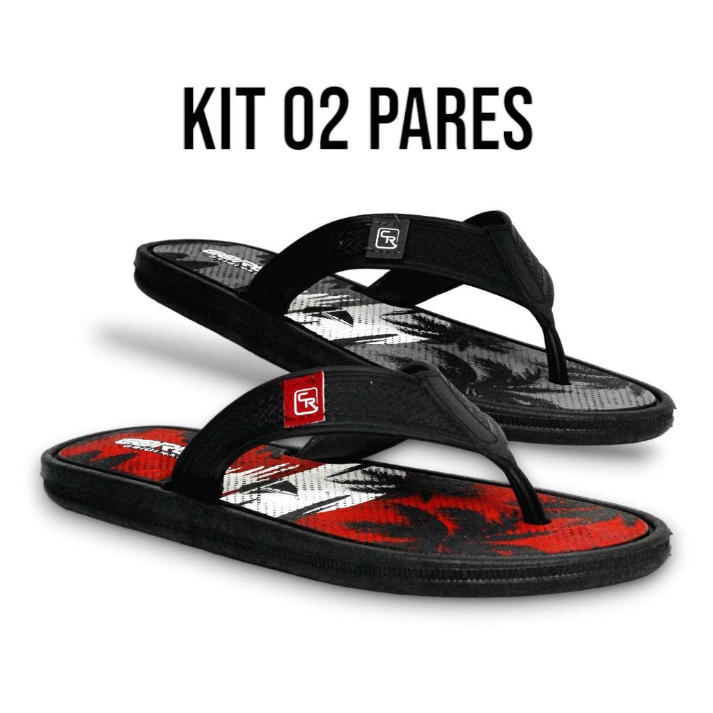 Kit 2 Pares Chinelo Sandália Masculino de dedo Adulto Antiderrapante Correia Larga