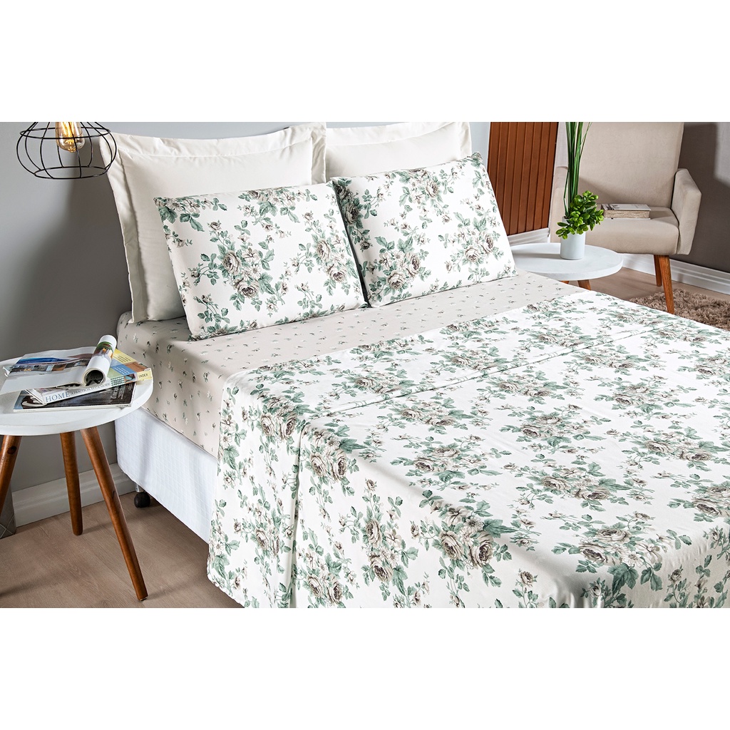 Jogo de Lençol Casal Padrão 200 Fios Cama Box 04 Peças com Elástico
