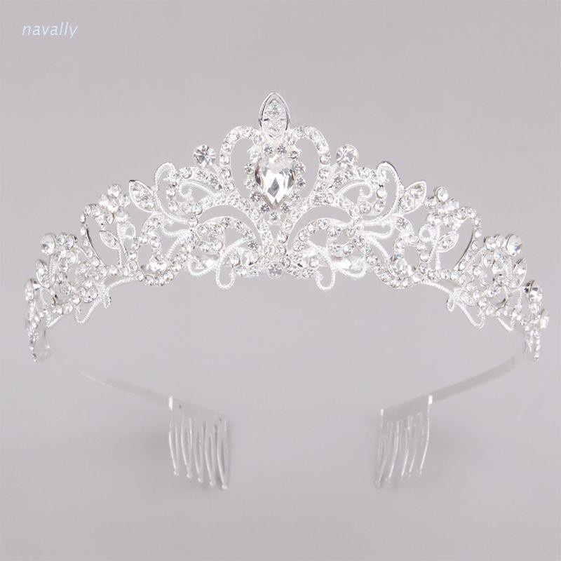 Navly Coroa De Casamento De Cristal Com Strass / Coroa De Princesa Com Pente Para Mulheres