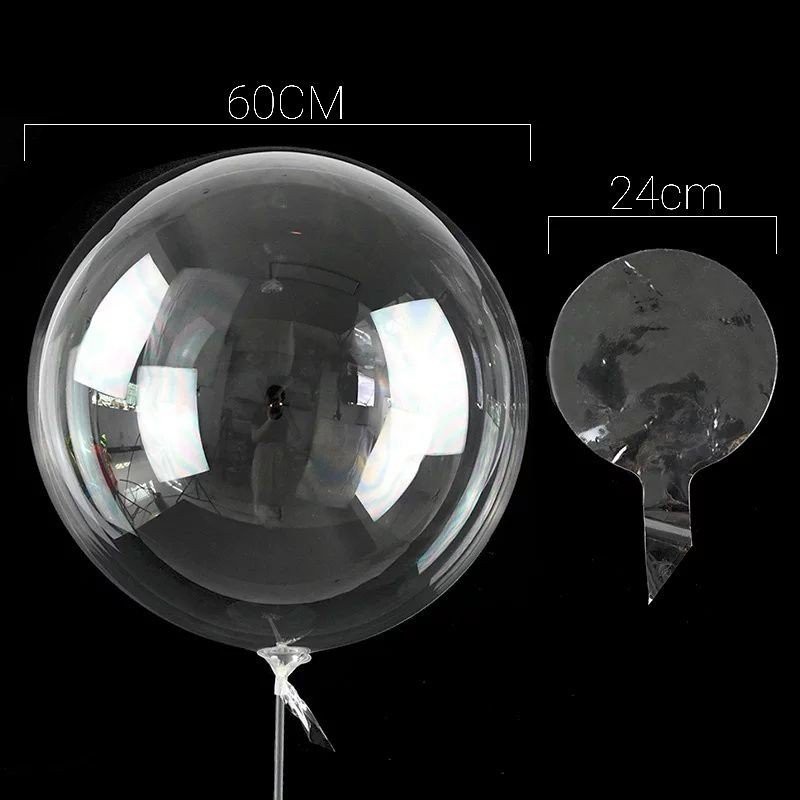 Kit c/10 Balão Bubble Bobo Transparente 24 Polegadas com Led + Varetas Transparentes 60cm - Festas Decoração