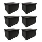 Kit 6 Caixas Plastica Organizadora Rattan C/ Tampa 25 Litros Empilhavel Grande Organizador Preto