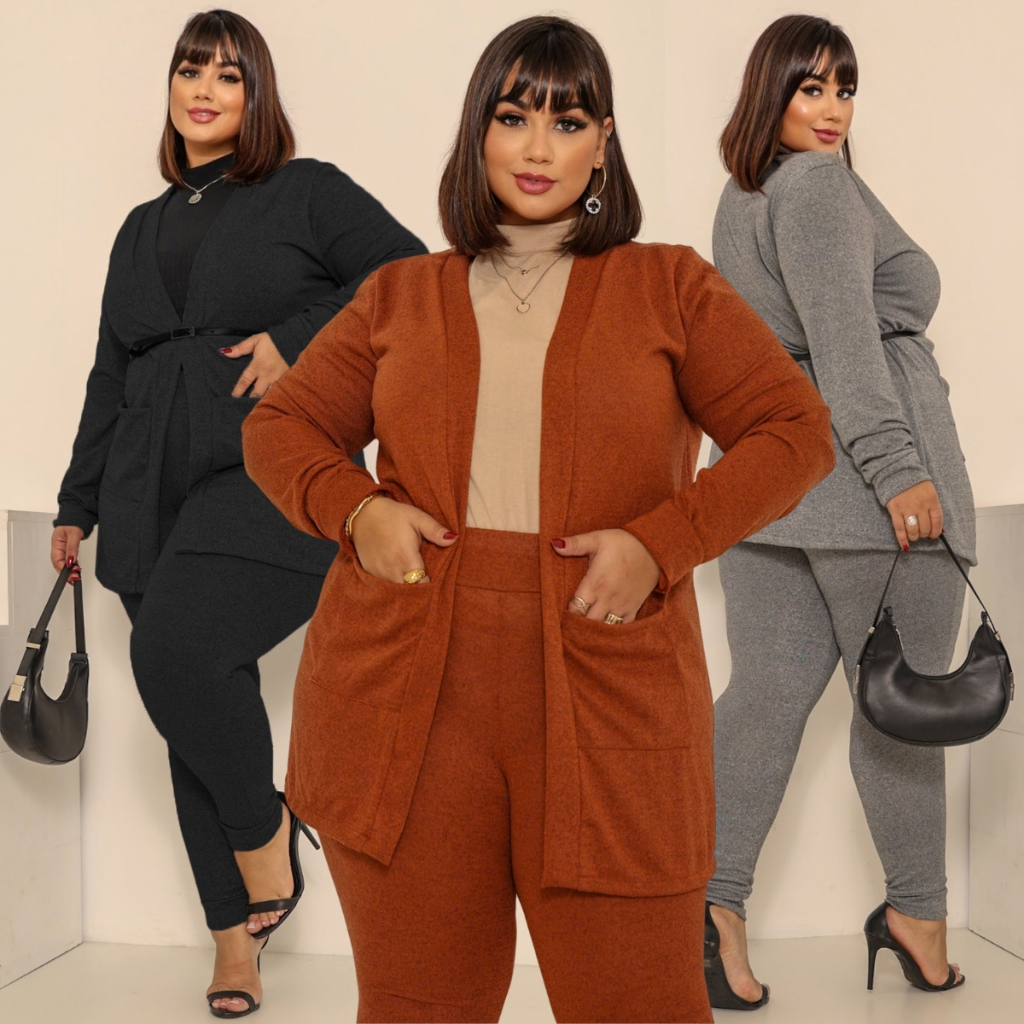 Conjunto lãnzinha Plus Size 3 Peças Cardigã Regata Calça Simples Casual elegante