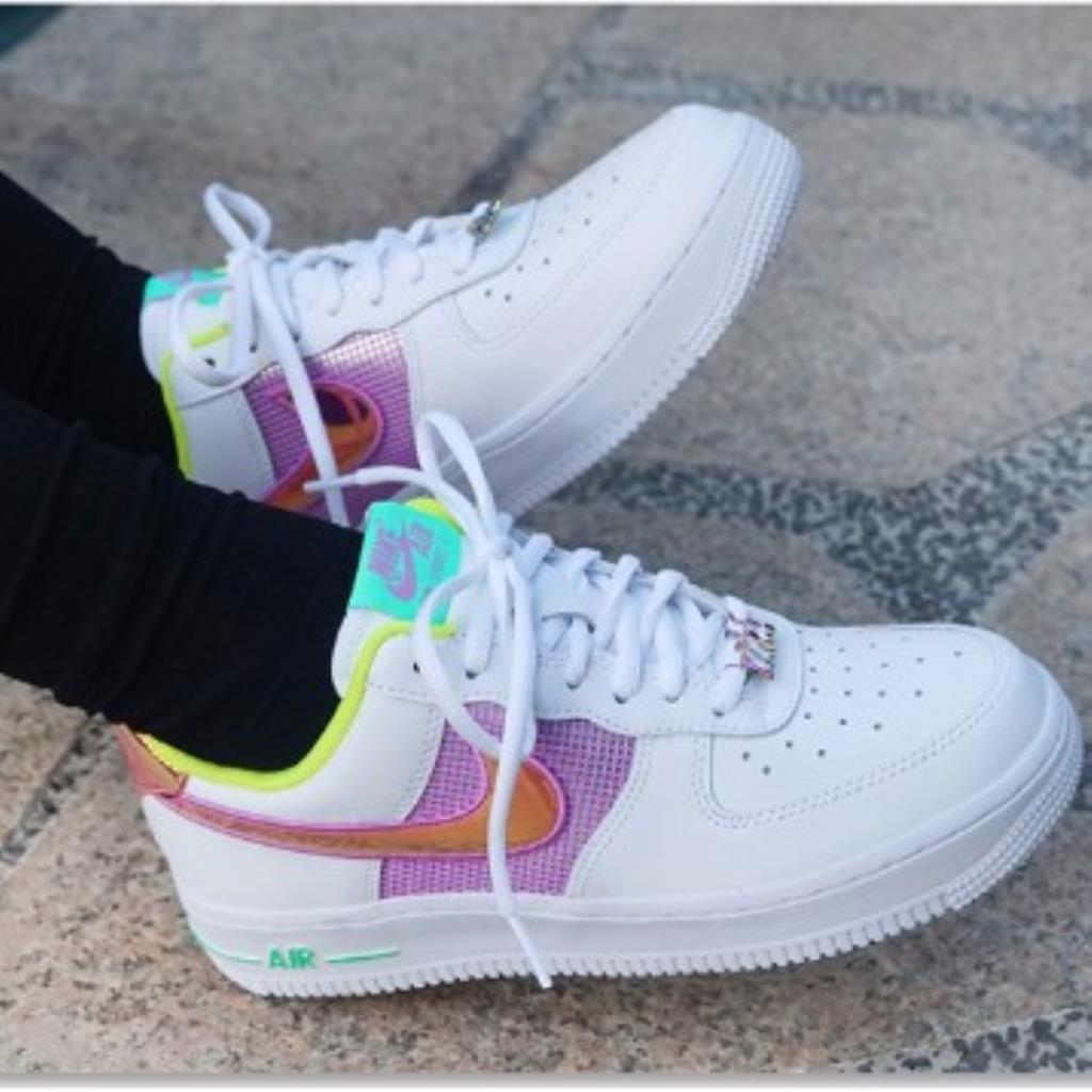 Alta Qualidade Nike Air Force 1 Páscoa Laranja Roxo Páscoa Cor Especial Casual Sapatos Femininos CW5592-100