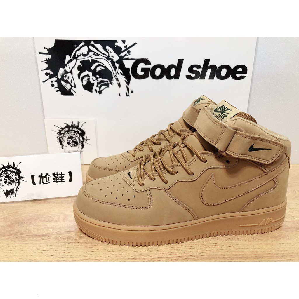 Sapatos de alta qualidade NIKE AIR FORCE 1 MID 07 PRM QS AF1 Cáqui 715889-200 dos homens