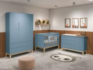 Jogo de Quarto para Bebê Completo 3 Portas Classic New Azul Fosco com Natural - MoveisAqui