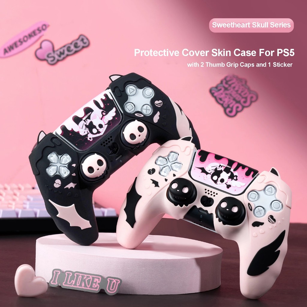 GeekShare Sweetheart Skull Controller Skin Set Para PS5 , Capa Protetora Playstation 5 Com 2 Pegas De Polegar E 1 Adesivo