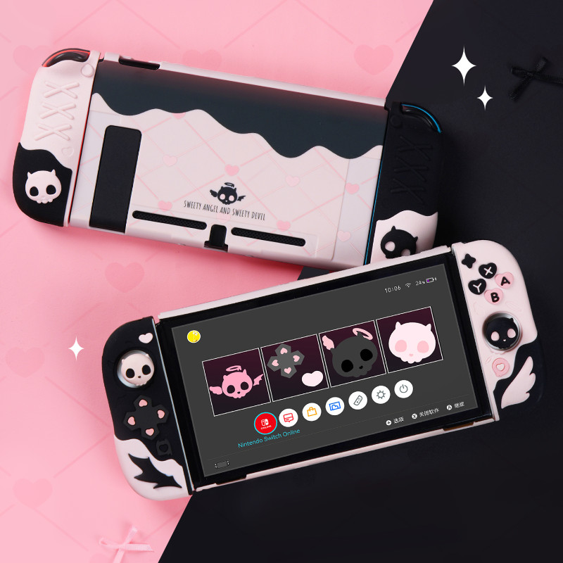 Capa Protetora De Silicone GeekShare Pink Skull Para Nintendo Switch E OLED