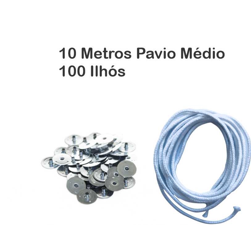 100 ilhós + 10 metros Pavio de vela (Pavio médio 2mm)