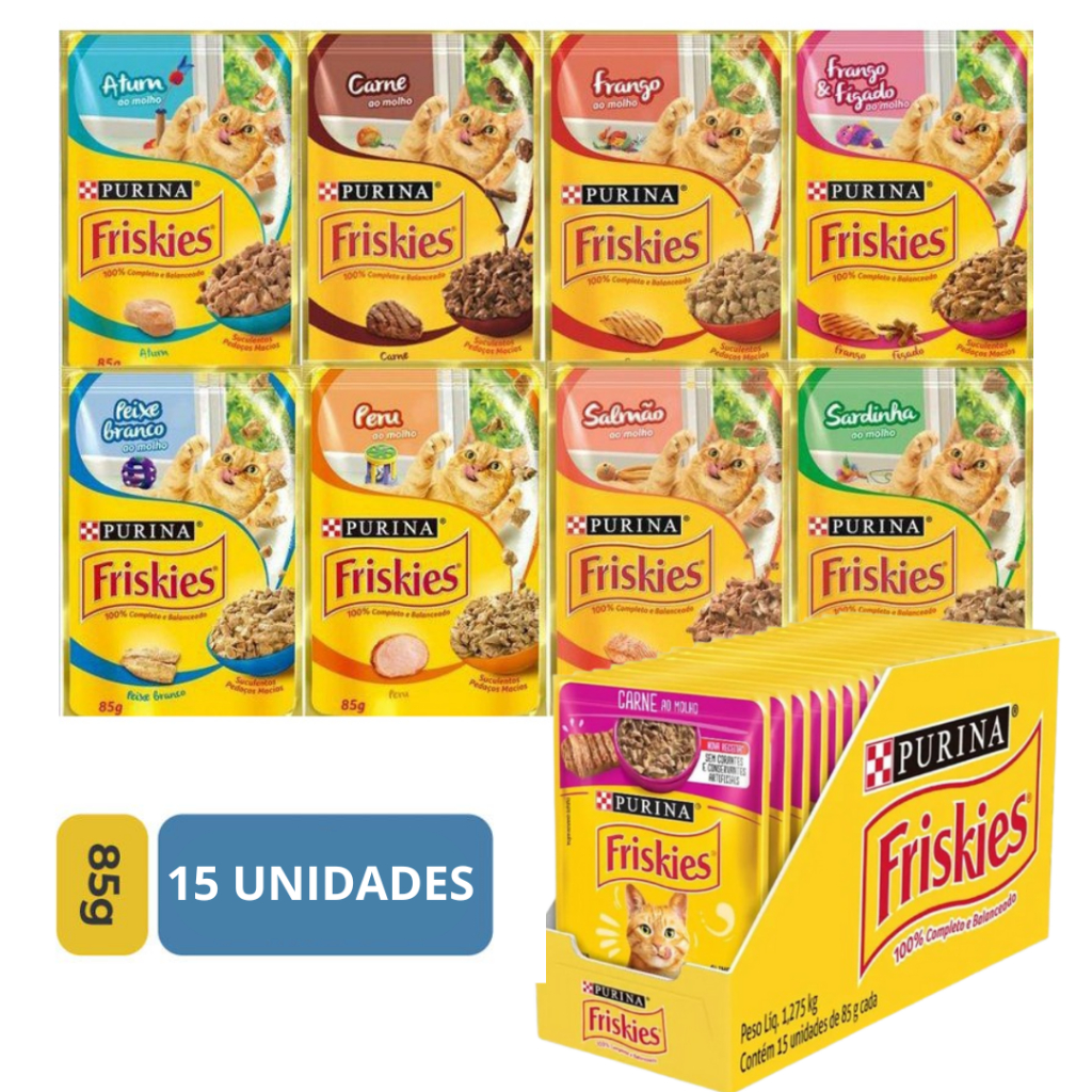KIT COM 5, 10 , 20 SACHÊS FRISKIES RAÇÃO UMIDA GATOS 85G PURINA OPÇÃO DE MESMO SABOR E SABORES VARIADOS ESCOLHA OS SABORES POR MENSAGEM