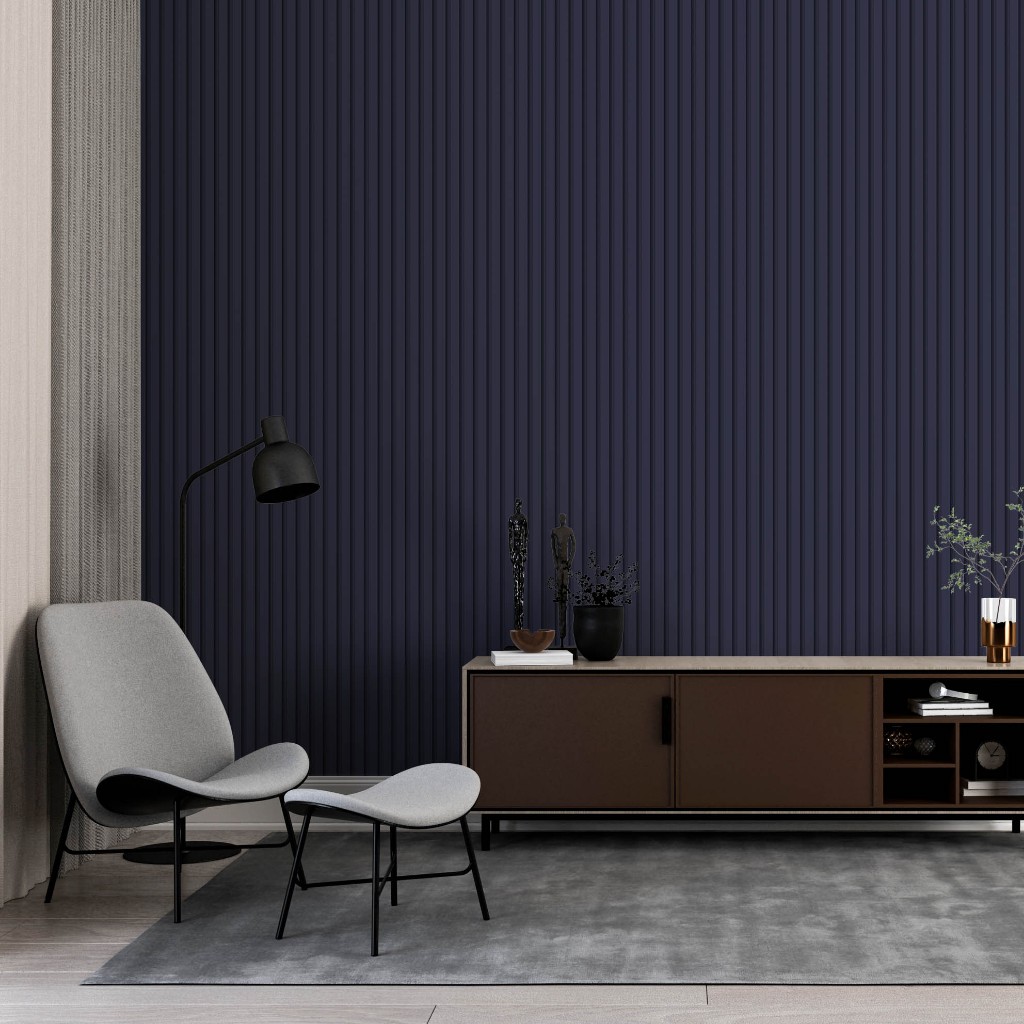 Papel De Parede Adesivo Ripado Azul Marinho Fino