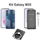 Kit Capinha Transparente + Película 3D deVidro Privacidade + Suporte Anel para Samsung Galaxy M35 5G