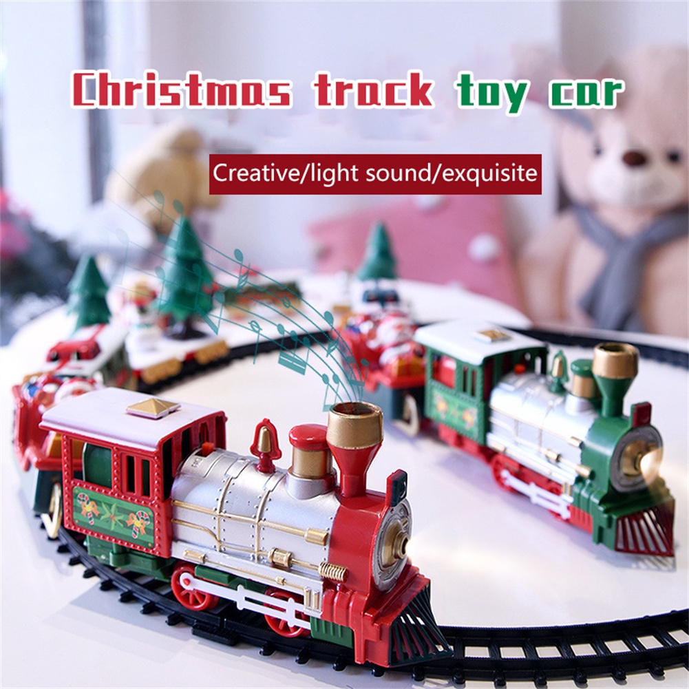 Treinar Sob A Árvore de Natal 3-em-1 Luzes E Trilhas Sonoras de Locomotiva Carro Trenó de Papai Noel Decorações de Natal 3-rail Brinquedos das Crianças ACREDITA