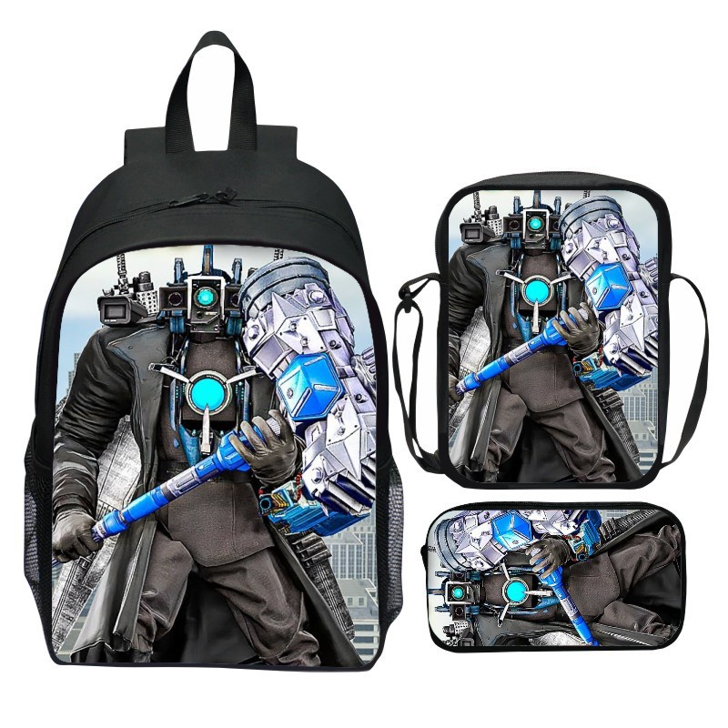 3 Peças/Conjunto Skibidi Toilet Mochila Impressa Do Anime Dos Desenhos Animados Das Crianças Da Escola Leve E Carga Reduzindo a Mochila