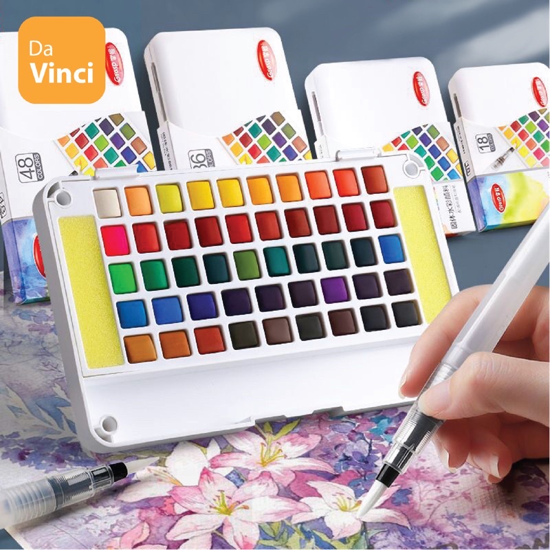 Tinta Aquarela Pastilha Com Pincel De Água 12 18 24 36 48 Cores Pigmento Sólida