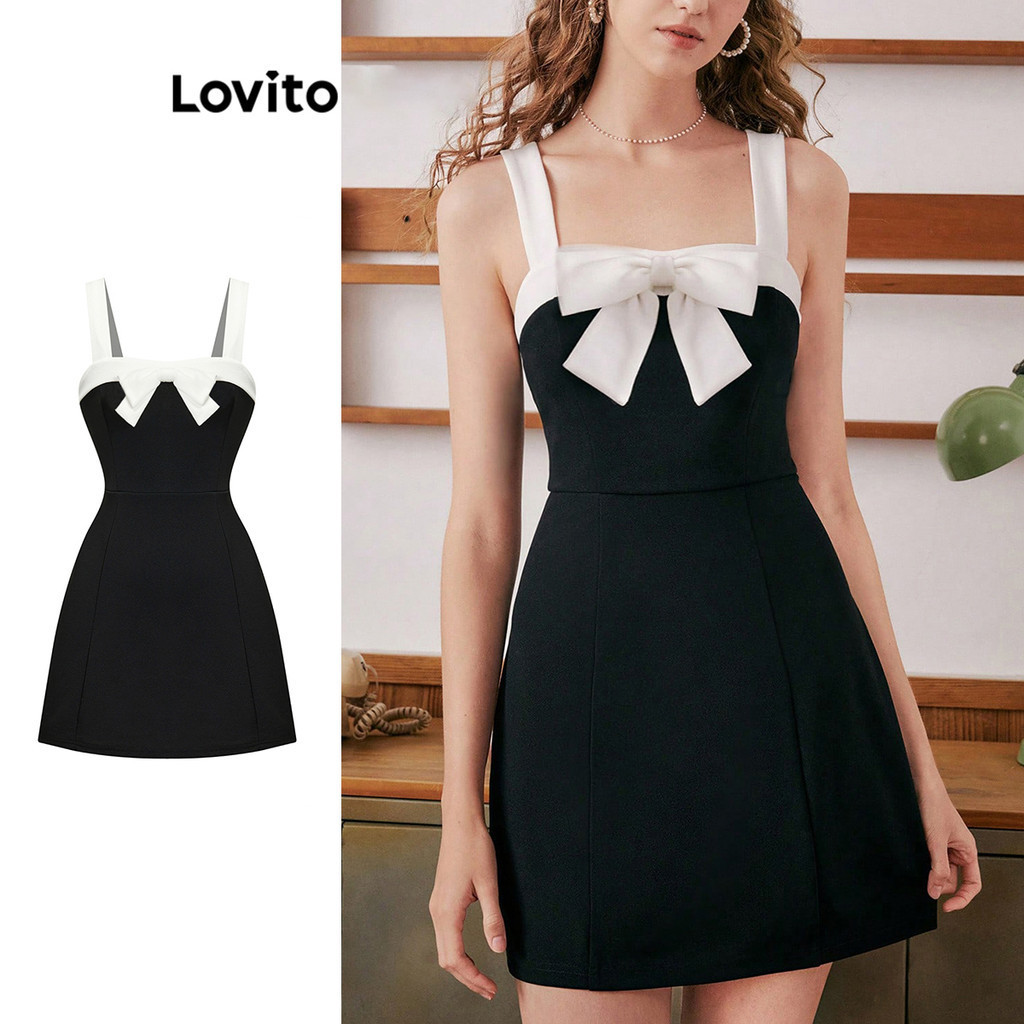 Lovito Vestido Feminino Casual Com Laço Frontal E Contraste L79AD080