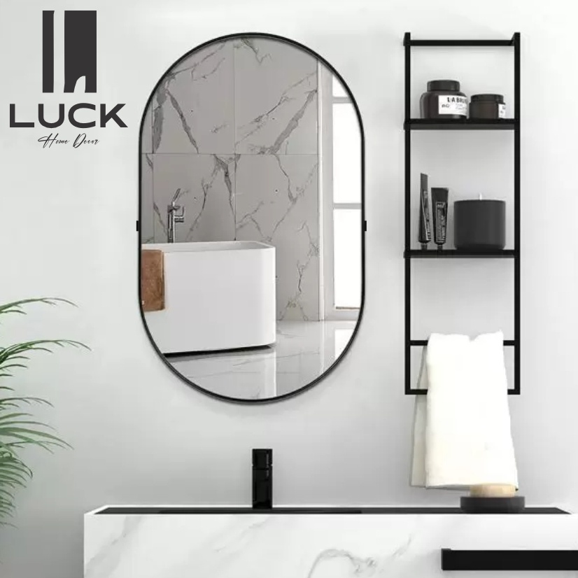 Espelho Oval 80x50 com Borda em Couro e Suporte Fixo – Elegante e Fácil de Pendurar