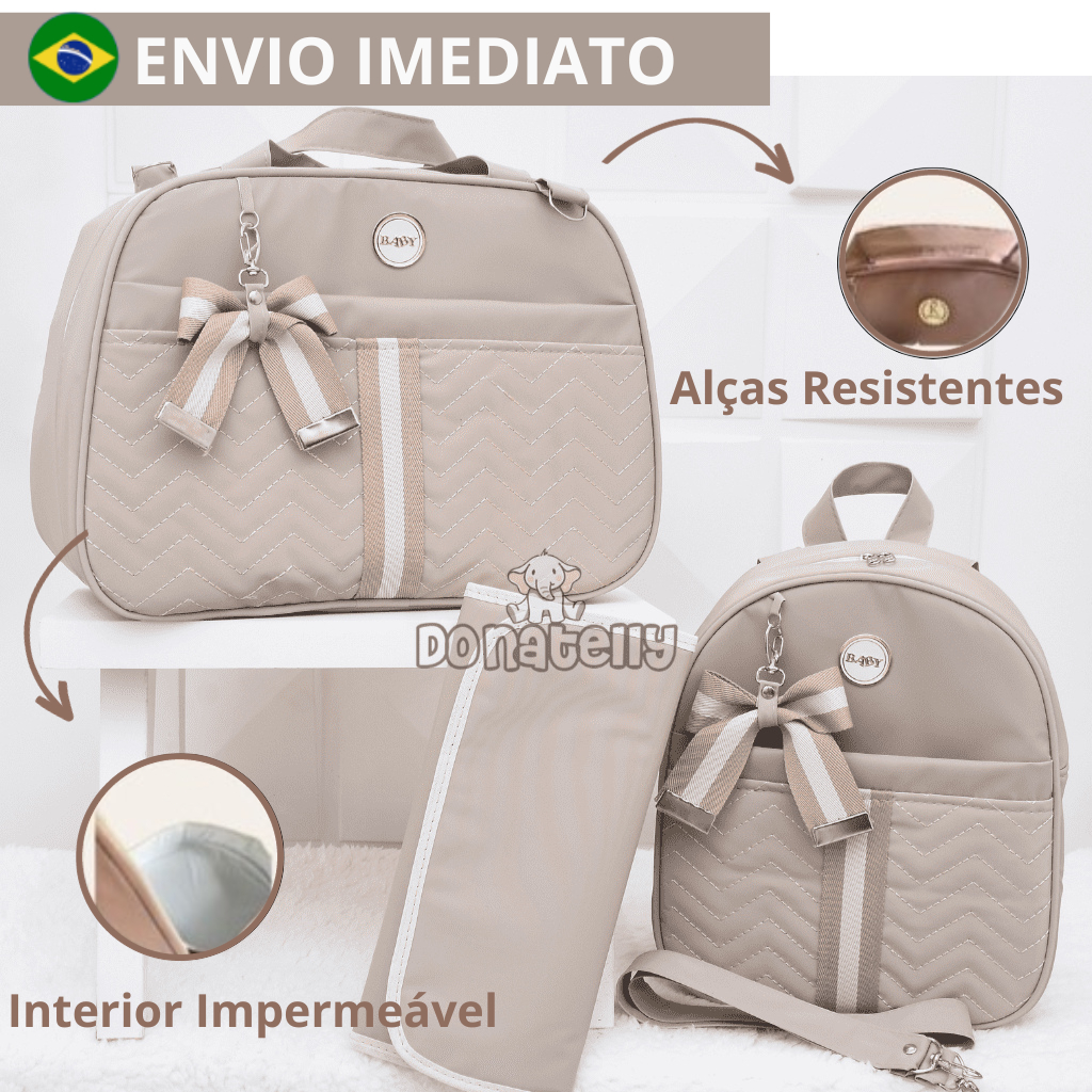 Kit Bolsa Maternidade Com Faixa e Laço Modelo Malinha 3 Peças, Térmica e Impermeável