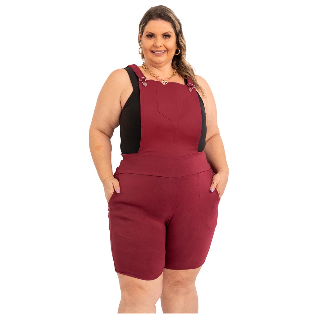 Macacão Jardineira Curta Bolso Plus Size Feminino 46 Ao 52
