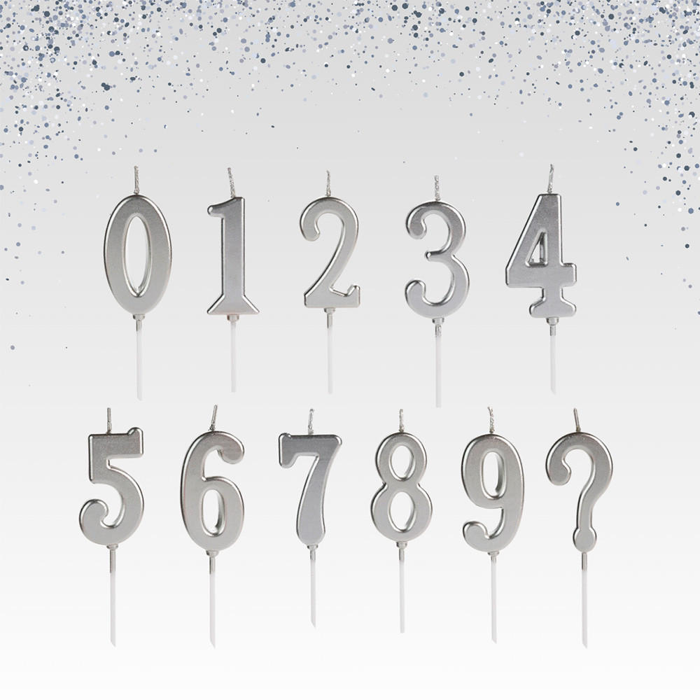 Vela de Aniversario Pick Prata Metalizado Numérica do 0 ao 9 Silver Festas