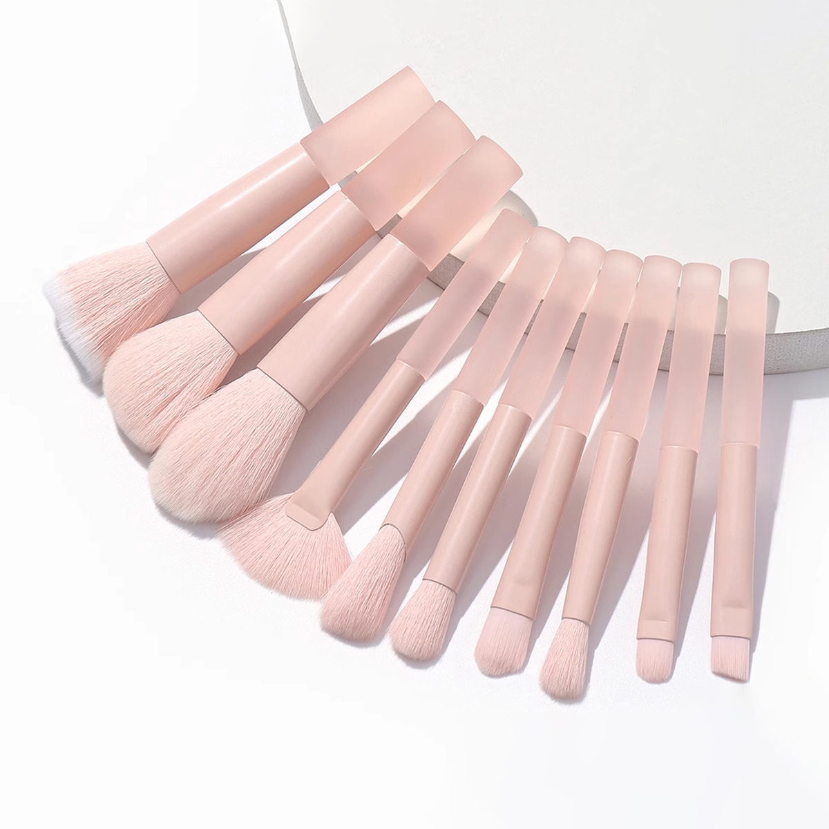 10pcs Pink Transparent Peach Color Conjunto de escovas de maquiagem profissional cor-de-rosa para iniciantes Conjunto de escovas de maquiagem para estudantes iniciantes Dedicado à fábrica Venda direta Conjunto de viagem portátil