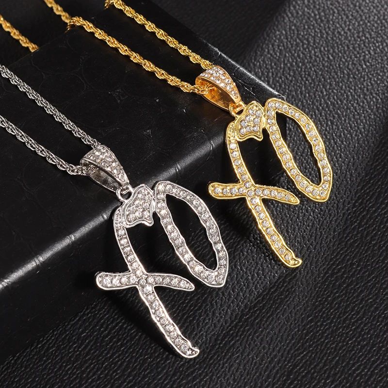 Requintado Brilhante Criativo Lindo Zircon Carta Xo Pingente Colar Homens Fashion Rock Party Jóias Presente de Férias