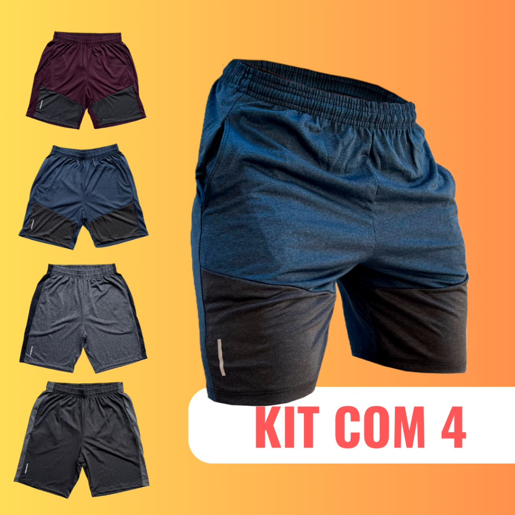 Kit 4 Shorts masculino bermuda dry fit tecido confortável e ajustável para Futebol Academia Treino