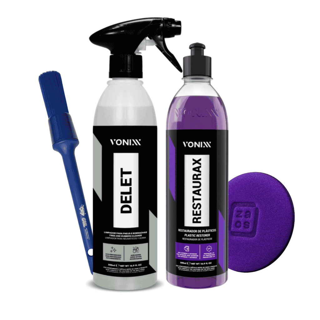 KIT SHINY REVITALIZADOR DE PNEUS VONIXX, DELET, PINCEL E APLICADOR