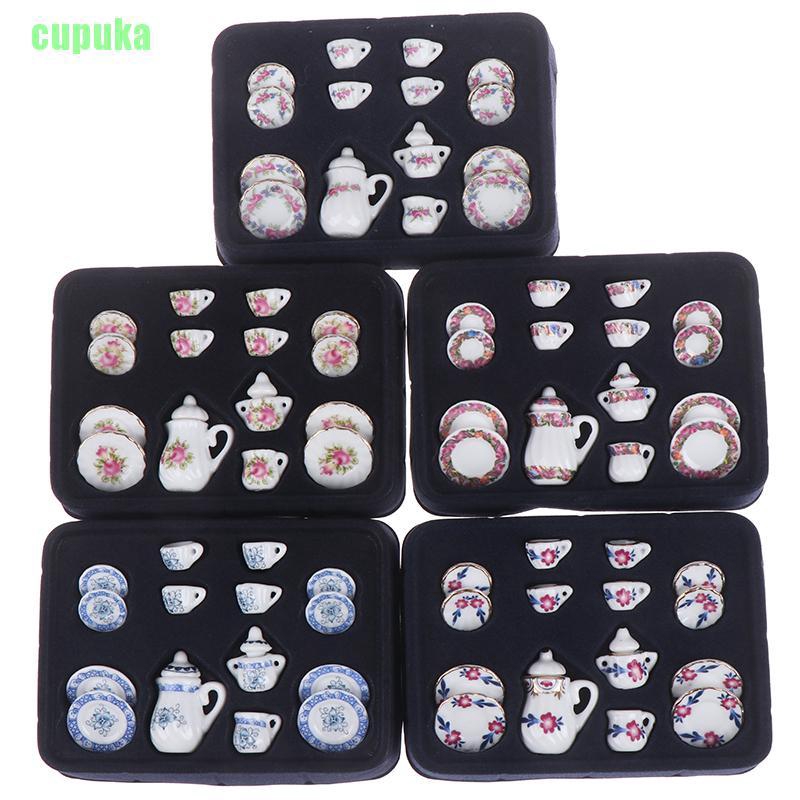 15pcs Mini Louça De Mesa Porcelana Cerâmica Para Jantar Conjunto De Chá De Café 1 : 12 Dollhouse Miniatura Decoração Paisagística Acessório De Tiro