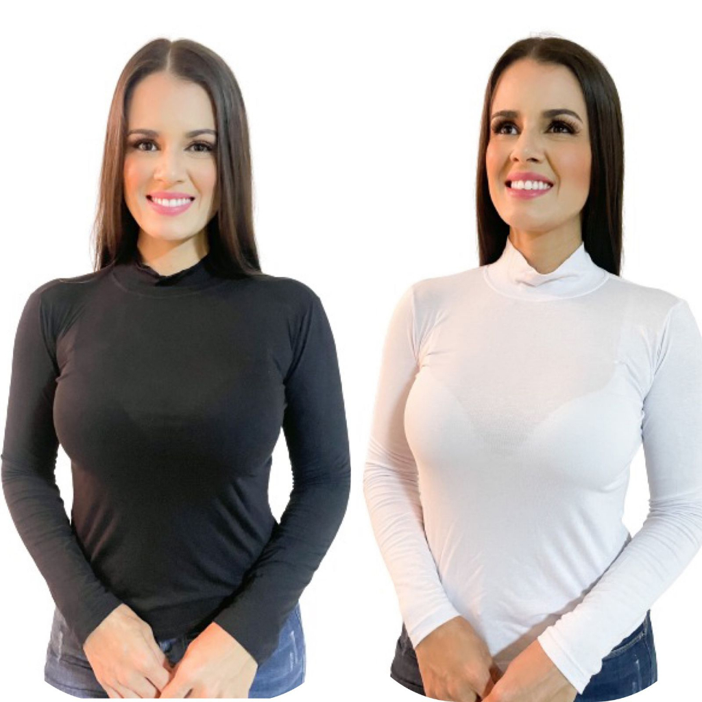 Kit 2 Blusas Cacharrel Feminina Manga Longa Gola Alta Segunda Pele