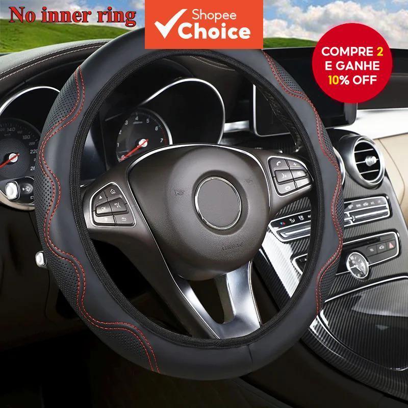 Capa de volante de carro em PU de alta qualidade, design antiderrapante com texturas, acessórios internos para carros