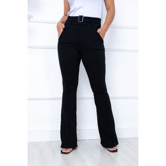 Calça pra Trabalho Social Lycra Boca de Sino Cintura Alta fivela forrado